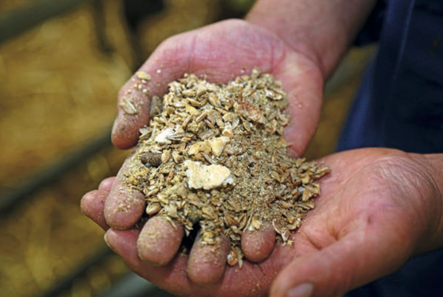 De kalveren krijgen een speciale brok: ecologisch kalvervoer met 30 tot 40 verschillende kruiden.